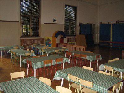 Gli anni trenta sono testimoni a Trieste di un grande interesse per l'educazione infantile che si concretizza nella costruzione di numerose scuole materne nei rioni che più ne erano sprovvisti: tra il 1933 ed il 1936 sorgono una dopo l'altra le scuole materne di S. Luigi, di Timignano, di Servola e di Barcola. Il progetto per un nuovo istituto da aprirsi nella specifica zona di Servola e destinato quindi ad aumentare la ricezione scolastica dell'antico insediamento di epoca romana, risale al 1934 allorquando si rese necessario affiancare ai due stabili già esistenti un'ulteriore struttura. La nuova scuola materna, inaugurata in via del Pane Bianco due anni più tardi, nel 1936, fu fondata dalla Lega Nazionale anche se già funzionante presso i locali messi a disposizione dalla Casa Rionale Balilla. L'edificio della nuova scuola, ad un solo piano con ampie finestre e cortile, rivela già nella sua struttura una concezione architettonica diversa, più moderna e funzionale, rispondente, nella disposizione dei locali, alle nuove esigenze igienico-didattiche imposte dal nuovo sentire. Nel 1952 vennero apportate sostanziali modifiche con l'aggiunta di una nuova ala comprendente due vani da adibirsi a sezione medica, si approfittò dell'occasione per restaurare l'intero edificio.