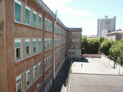 Il fabbricato, posto ai margini del rione di Roiano, dalle linee architettoniche chiaramente risalenti al ventennio fascista, delinea con la sua pianta ad "L" i fronti stradali sulla Via delle Ginestre e sulla Via Montorsino. Su via dei Giacinti corre il muro di recinzione del cortile di pertinenza del complesso scolastico. L'edificio presenta quattro piani fuori terra, più un piano seminterrato; nel cortile di pertinenza un corpo edilizio monopiano assolve alle funzioni di palestra, collegata a mezzo di un apposito passaggio coperto al fabbricato principale. La pianta presenta due vani scala, posti agli estremi del braccio lungo della "L" e collegati da un lungo corridoio affacciato sulla Via Montorsino. Le strutture portanti verticali e orizzontali sono in calcestruzzo armato, la copertura è piana. Le scale sono di tipo misto; a tre rampe quella principale, con rampe laterali appoggiate su travi inclinate in calcestruzzo armato e rampa centrale appoggiata su putrelle metalliche; quella secondaria semplicemente del tipo appoggiato su putrelle metalliche.