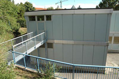 L'edificio sorge nel quartiere di Chiadino su lotto di pertinenza recintato a mezzo di inferriate metalliche verniciate tipo orsogrill. La pianta è a forma irregolare distribuita su un alzato di due livelli. Il piano terra è aperto sul prospetto di Via Dei Mille in corrispondenza di un ingresso secondario, l'accesso principale è collocato invece sul retro del fabbricato all'altezza del primo piano. La struttura edilizia è in cemento armato e latero cemento. La superficie delle facciate, con basamento rifinito ad intonaco grezzo, è rivestita da pannelli sandwich con superficie esterna in materiale plastico colorato; le finestre vetrate presentano telaio in alluminio. La copertura è piana, con rivestimento in guaina bituminosa.