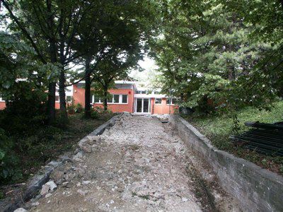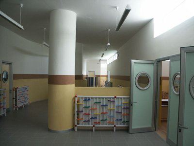 Sito nel quartiere di Santa Maria Maddalena Inferiore, l'edificio costituisce un complesso scolastico, delimitato da un'area verde di pertinenza, recintata, confinante con Via Petracco e Via Curiel. La pianta del complesso è di forma irregolare, ricavata dalla connessione di più corpi edilizi disposti in maniera organica a seguire l'andamento orografico del terreno. L'alzato è di un unico piano, con copertura a padiglione in coppi curvi rossi uso Trieste. Le strutture portanti sono in cemento armato e latero cemento. La superficie delle facciate è rivestita in intonaco multicolore. La luce naturale penetra all'interno anche grazie ad ampie fasce in vetrocemento, che definiscono il coronamento dei prospetti. Di diversa tipologia è il corpo adibito a palestra, di dimensioni più grandi, caratterizzato da ampie finestrature nella parte alta di facciata, adatte all'illuminazione dello spazio interno.