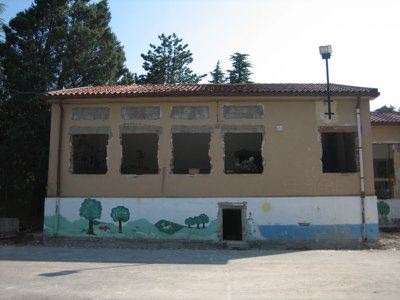 Edificio si trova nel quartiere di Villa Opicina ed è inserito in un'area delimitata da una recinzione con inferriate metalliche che delimita un piazzale in cemento utilizzato e attrezzato per attività ricreative; un giardino si sviluppo in prossimità dell'affaccio retrostante. La planimetria si sviluppa secondo uno schema irregolare composto da tre corpi accostati costituiti da due piani fuori terra e un piano interrato. Struttura portante verticale in pilastri di cemento armato con tamponamenti in laterizio, orizzontale composta da solai in laterocemento. Copertura a falde inclinate in laterocemento con manto in coppi di laterizio. Pluviali in pvc esterni alla muratura su tutti gli affacci con grondaia in rame. Le facciate sono rivestite in intonaco con tinteggiatura di colore bianco lungo la fascia del basamento e di colore marrone chiaro sul resto delle facciate. Le aperture sono disposte secondo un disegno regolare di facciata, mentre i serramenti sono stati temporaneamente rimossi a causa di alcuni lavori di ristrutturazione che riguardano l'intero edificio. L'ingresso principale, posto al centro della facciata, è preceduto da una breve scala con gradini in pietra artificiale.