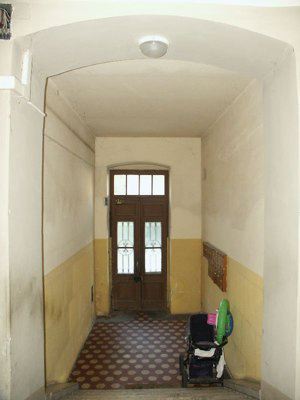 Il fabbricato, in stile tardo eclettico, presenta pianta trapezoidale e si inserisce in maniera isolata in uno spazio di risulta tra il cavalcavia della superstrada e l'area semi-industriale, che connota la parte più bassa della Via S. Marco, in prossimità dell'accesso al porto nuovo di Trieste. La sua disposizione urbanistica sembra il risultato di una demolizione incompleta, che ha coinvolto invece gli edifici ad esso limitrofi, nel corso dei processi di rivoluzione urbanistica che hanno più volte investito quest'area urbana nel corso del secolo XX. Disposto su cinque livelli continui fuori terra, la distribuzione molto semplice avviene attraverso un vano scala centrale; l'accesso avviene ad una quota inferiore al livello stradale di Via San Marco; la facciata principale si apre su uno spazio aperto scarsamente definito. Le strutture portanti sono composte da murature di spina in pietra sbozzata, solai lignei e copertura a falde a struttura lignea ad orditura multipla. Le scale in pietra sono del tipo a doppia rampa, appoggiate su putrelle metalliche, con pianerottoli di interpiano in voltine ribassate di laterizio.