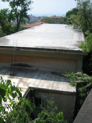 Edificio isolato con sviluppo regolare e affaccio sulla via Pendice Scoglietto. Situato su un terreno in pendenza in prossimità di alcuni edifici abitativi con sviluppo a corte e vicino ad un'area verde. Composto da due corpi edilizi; quello principale caratterizzato da un unico livello. Presenta una struttura portante verticale in pilastri e muratura con solaio di copertura in laterocemento rinforzato internamente da putrelle metalliche. La copertura è piana e calpestabile con rivestimento in guaina bituminosa, grondaie e pluviali in lamiera. Le aperture si ripetono con regolarità su ogni prospetto. Lo zoccolo è formato da due gradini in pietra; le superfici superiori sono rivestite ad intonaco con finitura a bugnato di color arancio. Le cornici delle aperture e le paraste sono in pietra artificiale intonacata di bianco leggermente aggettanti. Il corpo edilizio secondario si sviluppa su un unico livello. La struttura portante verticale è costituita da pilastri e muratura con solaio di copertura in laterocemento. La copertura è piana e calpestabile con un rivestimento in guaina bituminosa, le grondaie ed i pluviali sono in lamiera; una piccola scala in ferro collega le copertura dei due corpi edilizi. Le aperture si differenziano sia nelle dimensioni che nella tipologia a secondo dell'affaccio. Il rivestimento è in intonaco liscio di color rosso scuro con cornici aggettanti intorno alle aperture ad arco della facciata principale; l'affaccio posteriore presenta un intonaco liscio di colore beige. Le aree esterne sono pavimentate con battuto in cemento; i muri di contenimento e recinzione sono in cemento. Un sistema di rampe e passaggi permette l'accesso al cortile interno che posto ad un livello superiore rispetto a quello stradale.
