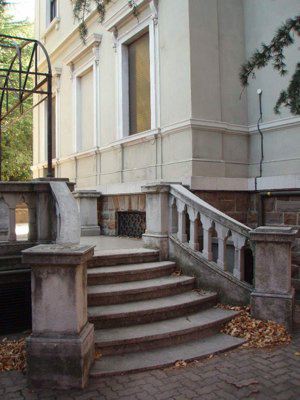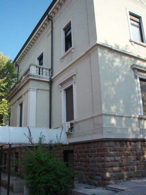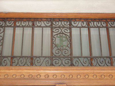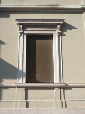 STEMMA Al centro della grata metallica del sopraluce del portone d'ingresso vi sono due iniziali in ferro "JP". CORNICE Sotto la linea di gronda, lungo tutto il perimetro dell'edificio, si sviluppa una fascia con decorazioni lapidee in rilievo, raffiguranti ghirlande, elementi vegetali e nastri.