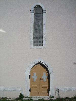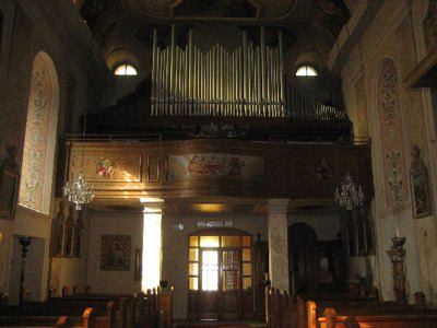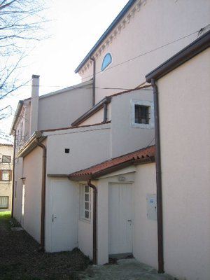Gli elementi architettonici sono distribuiti all'esterno e all'interno della chiesa. Un campanile posizionato in facciata rappresenta l'elemento architettonico di maggior importanza, tale struttura è sostenuta da quattro pilastri collegati tra loro da archi a tutto sesto. Una fascia marcapiano in pietra bianca e alcune piccole aperture con cornici in pietra decorano il fusto del campanile, mentre in sommità si collocano delle bifore con capitelli di ordine dorico, un orologio e una balaustra lapidea con colonnine. La copertura è composta da un cono esagonale con fori circolari chiusa da una croce in ferro. La facciata principale e quelle secondarie presentano piccole aperture a forma di semicerchio poste in sommità dell'affaccio; su una delle facciate laterali si colloca un ingresso secondario e alcune finestre ad arco di forma allungata. La lunetta superiore all'ingresso principale presenta un dipinto raffigurante una scena del Vangelo e due cammei laterali raffiguranti i visi di due santi. Internamente lo spazio è decorato con dipinti su tutte le superfici del soffitto e per larga parte delle pareti, l'abside è composto volte a vela dipinte; tre altari in marmo chiudono centralmente e lateralmente la navata; il coro, in posizione rialzata sorretto da due colonne in marmo, presenta decori pittorici all'esterno della balaustra lignea. Pavimentazione in pietra, pareti e soffitto con fondo ad intonaco.