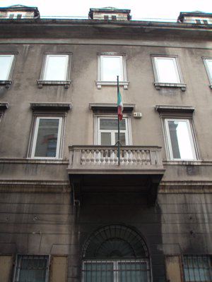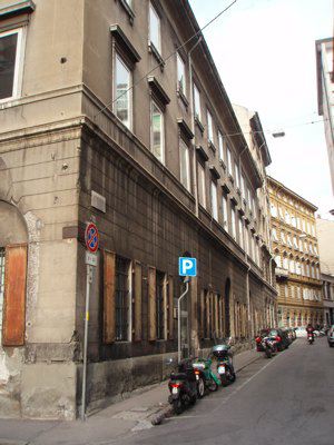 Il 30 agosto 1853, con il numero di decreto 12312, il Magistrato Civico approvava un progetto per l'erezione di un fabbricato prospiciente l'allora Contrada Dobler. La via, prendeva il nome dalla presenza in quella zona di uno stabile, risalente al 1802, con annesso terreno destinato a caserma e chiamato appunto Dobler dal nome del suo primo proprietario. Tale fondo, che un tempo serviva per gli esercizi militari, fu acquistato dal Comune nel 1808 e destinato ad uso scolastico. All'inizio del XX secolo la contrada cambiò denominazione, venendo intitolata al pittore triestino nato nel 1830. Il piano del caseggiato, molto semplice nelle sue fattezze si ergeva per due soli piani e recava la firma di Giorgio e Domenico Righetti. Nel 1875 la casa fu rimaneggiata da Domenico che, commissionato dall'allora proprietario dello stabile, il cav. Anastasio Vardacca, modificò in maniera sostanziale la struttura interna, aggiungendo un balconcino in ghisa al piano nobile. Nel 1912 si pensò di alzare di ben tre livelli l'intero edificio. I progetti di abbellimento dello stabile al N.Tav. 1540, ad opera dell'arch. Carlo Bonetti, non vennero però mai realizzati, probabilmente per questioni di carattere economico, si preferì quindi lasciare la facciata nella sua originaria e semplice linearità. Nel 1913 i locali, siti al primo e secondo piano, furono adattati e destinati ad ospitare un istituto scolastico.