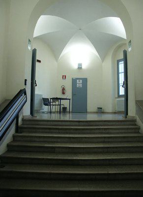 LAPIDE (esterno) Sul fronte principale in corrispondenza della parasta a destra del portale di accesso, una lapide in pietra bianca con lo stemma comunale ricorda l'intitolazione della palestra, riportando la seguente dicitura: "PALESTRA COMUNALE NICOLO' COBOLLI". ISCRIZIONE (interno) Sul pavimento dell'atrio di ingresso la dicitura "IN VI SALUS" ricorda il valore dell'attività sportiva per una vita sana.