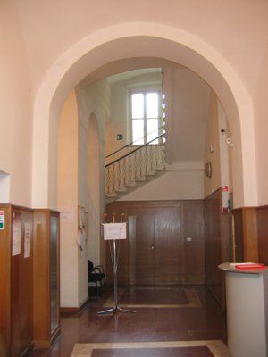 LAPIDE (interno): Nell'atrio di entrata, in fondo a sinistra, targa in pietra bianca calcarea inclusa nella muratura a ridosso della scala. (PICT4920.JPG). La targa è ruotata a 90° e reca l'iscrizione: "ATO.CJESU'C - NOME DI M - G + G - A 1759"