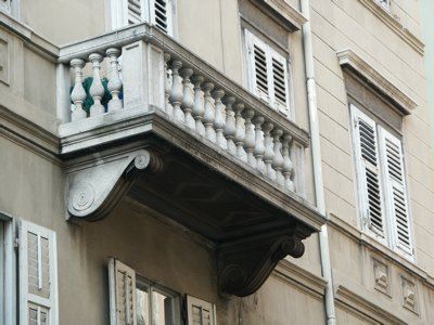 Le due facciate prospettanti sulla pubblica via sono trattate in maniera omogenea nella partitura e nelle decorazioni. Una fascia basamentale trattata a bugnato rustico ad intonaco presenta un abbassamento in pietra artificiale su tutto il perimetro fronte strada. I fori archivoltati del piano terra sono sottolineati da semplici fugature dell'intonaco. I serramenti sono a specchiatura unica con sopraluce. Il portone di ingresso è in ferro con specchiature vetrate. L'angolo e le porzioni laterali sono marcate da un leggero aggetto a dalle fugature orizzontali dell'intonaco. Ai piani superiori i tre fori architettonici centrali sono forniti di serramenti lignei a doppia anta a sei specchiature verniciati in colore bianco con serramenti oscuranti tradizionali. Lateralmente due serramenti affiancati di dimensioni minori danno luce ai vani accessori. Al secondo piano del prospetto posto lungo la Via Ginnastica, un balcone in pietra sorretto da mensole a voluta e delimitato da un parapetto a balaustrini, segna l'asse di simmetria della facciata. Architravi modanati con gocciolatoio in pietra bianca proteggono i serramenti del secondo piano. Due sottili marcapiani segnano la porzione del sottofinestra al secondo piano, decorata da specchiature con motivi geometrici. Al piano terzo un altro sottile marcapiano modanato collega orizzontalmente i fori finestra. La banchina in pietra è raccordata alla facciata tramite un cornice con semplici modanature in intonaco. Gronde e pluviali in lamiera verniciata bianca sono posti esternamente alla facciata sino al livello del solaio del primo piano. Il manto di copertura è in coppi curvi rossi. L'atrio di ingresso è pavimentato in marmette di graniglia e cemento. Gli interni sono semplicemente intonacati in colore giallo chiaro con abbassamento a smalto color ocra. I serramenti laterali di accesso ai locali al piano terra sono lignei a doppia anta verniciati al naturale. Le scale in pietra si sviluppano senza pianerottolo attorno ad un pilastro centrale; il parapetto metallico verniciato rosso e bianco presenta un corrimano ligneo verniciato naturale. I pianerottoli di piano sono pavimentati in lastre di pietra calcarea squadrata. I serramenti di porta di accesso agli appartamenti sono in legno a doppia anta verniciati in color marrone. Nel sottotetto il pavimento è composto da tavelle in cotto.