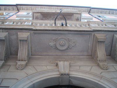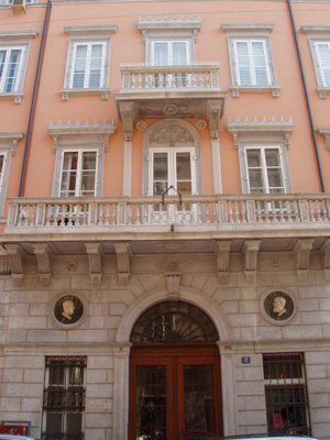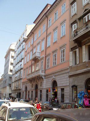 ELEMENTI ORNAMENTALI (esterno) Decorazioni a rilievo con elementi vegetali e medaglioni ornano la parte centrale della facciata in corrispondenza dei balconi. MEDAGLIONI (esterno) Nei medaglioni in marmo emergono due volti virili di profilo. Secondo alcuni da identificarsi con i profili dei fratelli Treves, membri di una famiglia che fece fortuna nel commercio a Trieste. BALAUSTRE (esterno) Balaustre con balaustrini in pietra ornano i due balconi in facciata. INFERRIATE (esterno) Le aperture del piano terra sono chiuse da inferriate in ferro battuto che riprendono i motivi decorativi mistilinei delle ghiere degli archi. MENSOLE (esterno) Mensole a voluta decorate con motivi vegetali a rilievo sostengono i balconi. Semplici mensole a voluta a sostegno della linda.