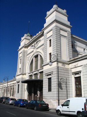 La struttura della stazione è caratterizzata da una planimetria a "U", con i prospetti principali che si affacciano uno in via Ottaviano Augusto, rivolto verso il mare e uno su via Giulio Cesare. La facciata rivolta verso il mare è costituita da due corpi laterali di tre piani e un corpo centrale leggermente arretrato, sempre di tre piani. Nei corpi laterali, al pianterreno, semicolonne in stile neorinascimentale e neomanieristico fiancheggiano le finestre centrali dei corpi aggettanti. Al primo piano, paraste incorniciano le aperture centrali. Frontoni triangolari concludono in alto i corpi laterali. Sul tetto corre una balaustra con pilastri ornati da cartigli agli angoli. Il corpo centrale arretrato presenta, al pianterreno, paraste a bugnato e decorazioni vegetali sotto ai frontoni delle finestre. Il piano superiore è caratterizzato da lesene lisce e cimase lineari a coronamento delle finestre. Al centro si eleva un timpano a semicerchio sormontato da un elemento scultoreo a conchiglia. Il fronte che si affaccia su via Giulio Cesare presenta, al centro, l'ingresso principale alla stazione ed è caratterizzato da due corpi di solo un piano e una parte centrale sopraelevata di un piano. L'ingresso, sormontato da un ampia finestra termale, è fiancheggiato da due torrette. Presenta episodi decorativi a rilievo ai lati e sopra l'arco centrale. Una cornice a dentelli conclude in alto la facciata.
