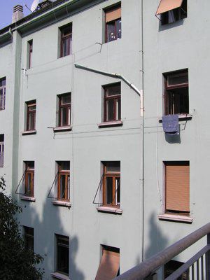 Nell'area in origine occupata dall'antico cimitero ebraico, Bet ha-Hayìm, nella prima metà dell'Ottocento fu realizzato un gruppo di edifici. Nella parte iniziale della via del Monte la Comunità israelitica costruì all'incirca nel 1829 il Tempio Vivante. Quest'ultimo, chiuso nel 1912 dopo l'apertura della nuova Sinagoga, fu demolito nel 1926. Al suo posto una nuova costruzione fu completata nel 1929, su progetto dell'ingegnere Fabio Eppinigi, ad opera dell'Impresa Triestina di Costruzioni dell'ing.Beer & C e con direttore dei lavori l'ing.Luciano Levi. L'edificio si integra strutturalmente con le vicine scuole israelitiche e si sviluppa per cinque piani, ancora collegati da un ascensore originario dell'epoca. La facciata principale è caratterizzata dalla suddivisione in fasce operata dagli evidenti marcapiani. La prima, in pietra arenaria a bugnato, è più ampia a causa del dislivello della strada. Lo stabile è stato interessato da lavori di ristrutturazione nel 2002.