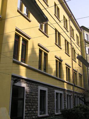 Nell'area in origine occupata dall'antico cimitero ebraico, Bet ha-Hayìm, all'inizio del Novecento sorgeva un gruppo di edifici costruiti nel 1827, poi demoliti nel 1928. Al loro posto una nuova costruzione, con destinazione scolastica per la Comunità Israelitica, fu completata nell'agosto del 1929, su progetto dell'ingegnere Fabio Eppinigi, ad opera dell'Impresa Triestina di Costruzioni dell'ing.Beer & C e con direttore dei lavori l'ing.Luciano Levi. L'edificio fu alla fine degli anni Trenta rifugio per profughi e emigranti che partivano per la Palestina al fine di sfuggire alle persecuzioni naziste. Al piano terra, in quegli anni, trovò posto una piccola sinagoga di rito polacco-ahkenazita.Gli edifici sono stati interessati da lavori di ristrutturazione nel 2002, a cui è seguita l'apertura del Lapidario e del Museo della Comunità Ebraica Triestina "Carlo e Vera Wagner". La particolare conformazione delle pendici del colle di San Giusto e il lotto d'intervento lungo e stretto, costrinsero il progettista a prevedere un edificio molto particolare, con piani a livello strada in parte interrati e con giardini ricavati da terrazzamenti.