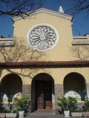 La Chiesa dedicata a S. Bartolomeo è situata al numero civico 113/1 di viale Miramare e si sviluppa perpendicolarmente all'asse viario. Costruita in posizione arretrata rispetto alla strada, si affaccia su uno spazio aperto antistante con alberi e aiuole, mentre a fianco sorge la canonica. L'area è separata dalla strada per mezzo di un muretto di cinta con balaustra metallica, all'interno del quale sono stati ricavati gli accessi delimitati da cancelli in ferro. L'edificio di culto, preceduto da un portico ad archi, presenta una pianta rettangolare ad un'unica navata, con altari laterali ed abside poligonale con cupola circolare. I volumi che lo compongono si differenziano per dimensioni ed altezza; tra questi svetta il campanile esagonale con guglia. La canonica si articola, invece, in una pianta irregolare a 'C' e si eleva per due piani fuori terra. La struttura portante verticale delle due strutture è in muratura. I prospetti di entrambi gli immobili sono caratterizzati da una logica compositiva semplice e da un apparato decorativo modesto.