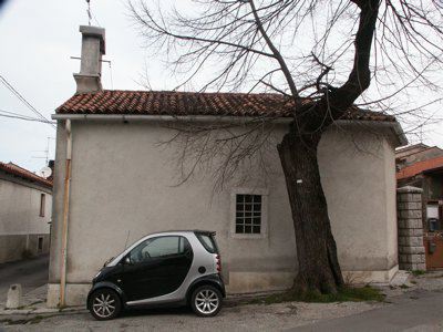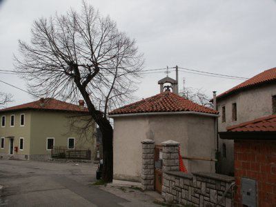 ISCRIZIONE (esterno): L'architrave del portale di accesso riporta l'incisione con la data 1789. STEMMA (esterno): In sommità della piccola torre campanaria è incisa l'alabarda di Trieste. ELEMENTO ORNAMENTALE (esterno): Sopra la croce in sommità della facciata è posto un indicatore di direzione del vento a forma di gallo in ferro battuto. DIPINTI (interno): Appesi alle pareti dipinti su tavola lignea raffigurano la Via Crucis. ISCRIZIONE (interno): In chiave di volta sopra l'arco che separa l'altare dall'aula, un'iscrizione riporta le parole "Leto Gospodovo 1999", probabile data risalente all'ultima risistemazione interna. ELEMENTO ORNAMENTALE (interno): Un crocifisso con simboli dell'opera e del lavoro dell'uomo è appeso alla parete d'ingresso. STATUA (interno): Una statua della Madonna con Bambino è posizionata nella nicchia in corrispondenza della finestra sul lato sinistro. DIPINTO (interno): Un dipinto su tavola con cornice barocca raffigura la sacra famiglia protetta dall'alto da Dio e dallo spirito santo in forma di colomba.