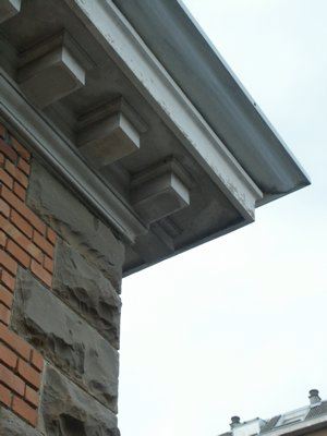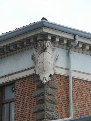 STEMMA (esterno) In corrispondenza degli spigoli del corpo di fabbrica centrale, all'altezza del coronamento, sono posizionati stemmi alabardati della città di Trieste in pietra bianca. ELEMENTI ORNAMENTALI (esterno) Tondi decorativi floreali decorano i prospetti dei volumi laterali, a fianco dei fori architettonici.