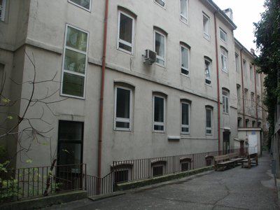 L'edificio, di forma rettangolare allungata, si colloca ai piedi del colle di San Giusto, ai margini della città compatta, nei pressi di Barriera Vecchia. La composizione della facciata principale, che definisce il fronte strada sulla Via Pondares, si presenta in stile eclettico neo-barocco, con quattro piani fuori terra, più un livello seminterrato. La distribuzione interna segue la simmetria della facciata, con un vano scala centrale trasversale e un corridoio longitudinale che percorre l'intera lunghezza dell'edificio. Le strutture portanti sono costituite da murature perimetrali in pietra arenaria; gli orizzontamenti sono realizzati in laterocemento su cordolature perimetrali e travi in calcestruzzo armato. La copertura è piana.