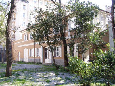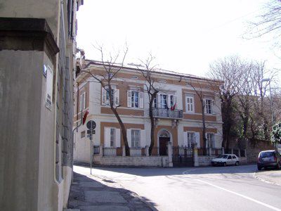 La villa fu commissionata nel 1836 dalla famiglia lombarda Bazzoni all'architetto Giovanni Battista de Puppi. La costruzione della villa e delle sue pertinenze, quali la scuderia e l'abitazione del custode, si realizzò nel 1837. Nel 1913 vennero approvati dal Magistrato Civico i progetti di ampliamento della struttura consistenti nella costruzione di una aggiunta alla villa e di un'adattamento da eseguirsi all'edificio principale. Tali lavori vennero affidati all'architetto Giorgio Zaninovich e all'impresa Paolo Curet & Co. La villa in stile neoclassico, oggi inserita nel contesto cittadino, era in origine una casa suburbana tipica dell'Ottocento triestino. L'edificio era circondato da un ampio parco con vialetti, serre e sculture, in buona parte ancora esistente. Nel corso degli anni la costruzione non ha subito sostanziali modifiche e gran parte delle finiture e delle decorazioni interne risulta mantenuta.