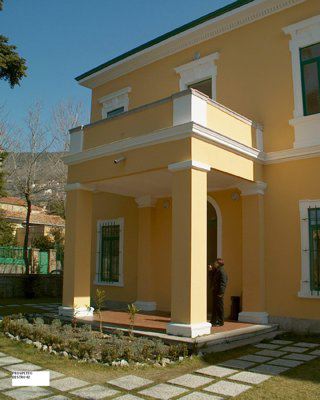 Nel 1896 Vittorio Sinigaglia aveva presentato al Magistrato Civico di Trieste la domanda per poter erigere un locale ad uso Caffè e Birreria a Barcola. Il progetto relativo recava apposta solo la firma del sorvegliante dei lavori, il capomastro Giovanni Battista Dreina. Il progetto però non venne approvato integralmente e fu necessario apportare delle varianti, in particolare le proporzioni e i particolari della decorazione delle facciate vennero considerati scorretti, e si chiedeva l'abolizione del timpano sul prospetto di viale Miramare. L'edificio che venne infine costruito, tra la fine del XIX secolo e l'inizio del successivo, è una costruzione sobria che rispecchia quel gusto equilibrato di decoro e misurata eleganza che lo stesso Comune intendeva diffondere. La costruzione presenta due piani fuori terra ed è circondata da un giardino. La struttura a pianta rettangolare è preceduta da un portico a pianta quadrata sormontato da un terrazzino. La superficie è trattata ad intonaco giallo che contrasta con il bianco del marcapiano e delle cornici delle aperture. L'edificio ospita dal 1975 una struttura del Centro di Salute mentale ed è stato oggetto di restauro nel 2002.
