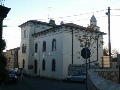 L'antica Comunitatis Sanctae Crucis era abitata, sul finire del XIX secolo, da 1372 anime addette all'agricoltura e alla pesca. In posizione privilegiata e strategica, era la prima stazione di posta in direzione dell'Italia sull'antica Via Gemina, che da Aquileia portava verso il nord-est. Testimonianze documentarie della presenza di un luogo di culto sacro nella zona risalgono al 1260: in un documento dell'Archivio Capitolare di Trieste si evidenzia, infatti, l'esistenza della chiesa di Santa Croce de contrada Tergesti. Un'altra pergamena, risalente questa al 1316, rivela come l'allora vescovo Rodolfo Pedrazzani assegnasse al pievano e al chierico di Tomai possessioni situate nella località di Sancta Cruce. Un riferimento più preciso relativo all'esistenza di una chiesa nel paese si ritrova nello Statuto del Capitolo Cattedrale risalente al 1338. Altri documenti ci informano che, nel periodo compreso tra il 1446 e il 1470, le monache Benedettine del convento di S. Cipriano fossero entrate in possesso dell'intero villaggio. La chiesa, dedicata all'Invenzione della Croce, da cui probabilmente deriva l'intero nome dell'abitato, fu cappellania dipendente da Opicina fino al 1847, quando se ne staccò venendo promossa a parrocchia. Accanto alla chiesa, l'edificio della Canonica. Il fabbricato, in pietra bianca a vista era destinato ad ospitare l'antica scuola del paese. I primi progetti relativi al fabbricato in questione risalgono al 1820 quando si pensò di ampliare la "Casa Curatta e Scuolla unita a detta Casa situata nella Villa Territoriale di Santa Croce". E' molto probabile però che la costruzione sia di epoca anteriore. Due i livelli: al pianoterra due cantine, a quello superiore una sala destinata ad uso scolastico, una sala da pranzo e una cucina con annessa dispensa. Nel 1896 la casa subì un restauro, si approfittò dell'occasione per addossare al fabbricato una nuova canonica più consona alle sue funzioni.