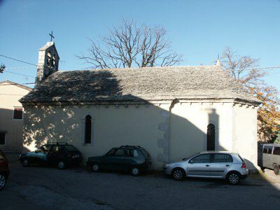 Sul fronte principale la torre campanaria in conci squadrati di pietra calcarea segna l'asse di simmetria su cui si basa l'intera composizione. La rastrematura a gradoni conferisce alla torre un aspetto più slanciato. Un foro archivoltato alla base della torre protegge l'ingresso alla chiesa; in cima due aperture ad arco ospitano le campane mosse da un sistema di funi azionabile manualmente. Una croce traforata in ferro battuto completa la punta cuspidata della torre. Il foro di accesso con cornice in pietra bianca a sesto acuto, è chiuso da una porta in legno massello a doghe incrociate verniciate al naturale. Le facciate sono trattate ad intonaco, e un modesto basamento in pietra di Aurisina protegge il piede solo nella parte absidale. Conci irregolari alternati in pietra bianca definiscono con precisione gli spigoli dell'edificio. Piccole mensole a voluta sorreggono il modesto sporto di linda modanato in pietra bianca. Il manto di copertura è costituito da lastre in pietra calcarea di modeste dimensioni. I fori stretti finestra laterali sono definiti da cornici in pietra di Aurisina con capitello dorico all'imposta dell'arco acuto di completamento. Serramenti vetrati con struttura metallica e inferriata di protezione in ferro battuto permettono alla luce di entrare in maniera molto selettiva all'interno. In sommità alla copertura dell'abside un elemento conico in pietra di Aurisina sorregge una piccola croce in ferro battuto. All'interno, sulla destra dell'ingresso è posizionata un'acquasantiera in pietra calcarea; il pavimento, a quota leggermente inferiore rispetto al piano stradale esterno, è realizzato in lastre quadrate regolari di pietra di Aurisina posate in diagonale; le pareti sono semplicemente intonacate fino all'imposta della copertura, di cui rimangono a vista le strutture e il tavolato ligneo. L'abside è realizzato con nervature in pietra calcarea, che disegnano secondo uno schema geometrico l'intradosso della volta.