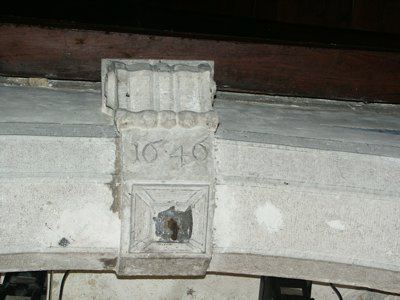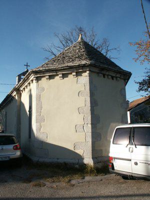 STATUA (esterno) Un elemento scultoreo datato 1895 è opera dello scalpellino Dusak; è posizionato alla sinistra della torre sul fronte principale e raffigura un mendicante. ISCRIZIONE (interno) Sulla chiave di volta di accesso all'abside un'iscrizione ad incisione riporta la data del 1646, probabile data di realizzazione della cappella. ELEMENTI ORNAMENTALI (interno) Le nervature a sostegno della volta dell'abside sono decorate all'imposta da volti di cherubi in pietra, ricavati in altorilievo.