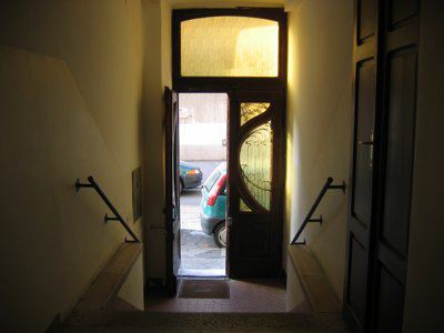 Basamento in finto bugnato rustico a fasce rifinito ad intonaco sui toni color mattone fino al marcapiano del secondo solaio ed abbassamento in lastre di pietra naturale bocciardata. Fascia superiore verticalmente tripartita in intonaco color rosa antico, lavorato liscio nella parte centrale ed a bugnato liscio a fasce ad evidenziare le estremità laterali di facciata. Alto marcapiano modanato in corrispondenza del secondo solaio; più sottile a livello del quarto solaio, aggettante e dentellato alle estremità laterali di facciata. Marcapiano a livello del solaio di sottotetto, sporto di linda intonacato. Copertura piana in guaina ardesiata. Pluviali in metallo verniciato simmetricamente distribuiti in facciata, rientranti nella muratura poco al di sopra della cornice marcapiano del secondo solaio. Fori di apertura ad arco ribassato al piano terreno per il portone d'entrata e per le finestre, rettangolari ai piani superiori per finestre e portefinestre. Archivolti delle finestre a pianterreno evidenziati da bugnato a conci con chiave di volta in rilievo e fori finestra definiti da semplice riquadro liscio e davanzale piano; riquadro liscio anche per le finestre al primo piano, con cornice modanata di collegamento sotto i davanzali delle finestre. Fori finestra dei piani superiori delineati da sottile cornice modanata. Al secondo e quarto piano, finestre riquadrate da edicole in pietra a paraste verticali, con architrave e con davanzale sostenuti da mensoline a volute, decorate da dentelli in corrispondenza dei fori in estremità di facciata; al terzo piano davanzali modanati in pietra inclusi in riquadro piano; al quinto fori finestra collegati da cornice a motivi geometrici e davanzali piani. Portone principale d'entrata inquadrato da edicola in pietra con paraste verticali ed architrave a dentelli sostenuta da mensole a voluta con peducci vegetali; analoga ma semplificata la decorazione delle portefinestre alle estremità laterali di facciata al secondo piano, con accesso a balconcini con struttura portante metallica, mensole e parapetti stile Liberty in ferro. Porta d'ingresso in legno massello a doppia anta con riquadro geometrico nella parte tamponata e specchiatura vetrata protetta da inferriata Liberty con motivi "a colpo di frusta"; sopraluce vetrato ad una specchiatura. Serramenti vetrati a due ante in alluminio verniciato bianco completi di scuri anch'essi in alluminio bianco, montati su controcassa esterna. Disimpegno dell'atrio d'ingresso in piastrelle a motivi geometrici chiari su fondo mattone, presumibilmente originali; breve rampa di accesso in pietra grigia d'Aurisina bocciardata con corrimano metallico non originale. Scala di accesso ai piani a due rampe con gradini in pietra d'Aurisina bocciardata, con corrimano in legno e ringhiera originale a geometrie Liberty in ferro verniciato ocra. Nel disimpegno e nel vano scala principale, murature in intonaco bianco liscio con fascia battipiede rifinita ad intonaco ocra; nei ripiani di scala pavimentazione originale in battuto di graniglia grigio con fascia perimetrale rossa. Nelle rimanenti parti comuni, pavimentazione originale interamente sostituita da piastrelle grigio chiaro, battipiede piastrellato e superfici trattate a solo intonaco bianco. Serramenti interni d'accesso agli appartamenti di varia tipologia, alcuni originali in legno massello. Botola originale di accesso alla copertura in legno verniciato bianco. Dispositivi di illuminazione non originali; impiantistica a vista. Cortile interno con breve rampa d'accesso in cemento e ringhiera metallica originale; superfici delle murature in intonaco bianco liscio. Fori architettonici con sola protezione metallica dalle intemperie e serramenti in alluminio verniciato bianco a due ante, completi di scuri a pianterreno; impiantistica a vista. Pluviali in pvc, grondaie metalliche.