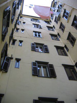 ELEMENTI ORNAMENTALI (esterni): - Targa metallica posta sul lato desto rispetto al portone centrale sopra all'indicazione del civico (Rismondo 040.jpg), dalla datazione non leggibilissima, che riporta la scritta: "ASSICURAZIONI GENERALI - 1831 - TRIESTE". ELEMENTI ORNAMENTALI (interni): - Immagine votiva raffigurante Cristo benedicente (Rismondo 038.jpg), conglobata nell'intonaco della muratura al primo ammezzato del vano scala, con base in legno ed effigie presumibilmente in gesso con finitura colorata.