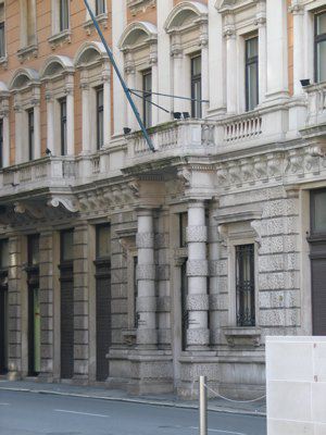 L'edificio, ubicato nel Borgo Teresiano e affiancato da pregevoli palazzi di interesse culturale, venne costruito entro il 1907. L'immobile venne commissionato dalla nobile famiglia Ralli, e precisamente dai baroni Simone, Paolo e Stefano. I lavori di edificazione vennero affidati all'ingegnere Arturo Bachschmid. L'immobile, che si affaccia su Via Milano e Piazza Vittorio Veneto, presenta una decorazione architettonica che richiama lo stile neoclassico diffuso a Trieste, in particolare nell'uso di paraste e lesene e nell'articolazione orizzontale della superficie muraria ottenuta grazie all'impiego degli ordini classici. Il palazzo è arricchito da preziose decorazioni anche negli ambienti interni, tra cui spicca l'atrio d'ingresso con scalone e colonne e stucchi a festoni e clipei. L'immobile, di gusto eclettico, conserva gli originali infissi d'epoca, caratterizzati da porte con vetri opachi decorate da motivi a greca.