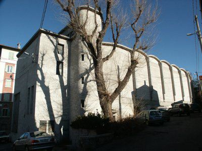 Il fabbricato si colloca ai margini del rione di San Luigi e presenta volumetria e pianta anomale per il contesto urbanizzato in cui si colloca, ma confacenti al tipo di funzione prevista. In tutto molto simile a quella di un edificio di culto, la composizione del progetto detta linee spiccatamente razionaliste non del tutto rispettate nella fase esecutiva. La struttura a due livelli, di cui uno parzialmente interrato, è realizzata in calcestruzzo armato e permette la realizzazione di due grandi aule sovrapposte, che occupano la larghezza dell'intero corpo edilizio. Le funzioni accessorie sono ospitate nei corpi secondari ben denunciati anche formalmente nella composizione dei volumi.