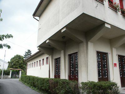 I primi due corpi di fabbrica presentano finiture esterne molto semplici, con un modesto basamento in conci di pietra calcarea a spacco di cava posti in corsi regolari orizzontali e intonaco liscio per tutta l'altezza di facciata e lo sporto della linda. Gronde e pluviali in lamiera zincata raccolgono le acque meteoriche che scendono dalla copertura in coppi curvi rossi "uso Trieste". I serramenti di porta vetrati al piano terra si presentano in legno verniciato naturale, con specchiature vetrate protette da inferriate metalliche a decorazione geometrica. I serramenti di finestra sono in legno verniciati colore rosso con avvolgibili lignei e cornici squadrate in lastre di pietra di Aurisina. Il terzo corpo di fabbrica presenta un rivestimento in conci squadrati di pietra calcarea a spacco di cava, con tre grandi aperture archivoltate con specchiature in vetro-cemento. Internamente l'atrio al piano terra è rifinito con lastre di marmo travertino alle pareti e verde alpi al pavimento; i restanti vani presentano varie tipologie di pavimentazioni in piastrelle o legno di poco pregio. Il piazzale antistante l'ingresso è pavimentato in lastre di pietra locale posate alla palladiana, con aiuola circolare centrale.