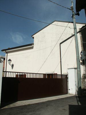 Il fabbricato si configura come un corpo edilizio dalle caratteristiche tipiche dell'architettura urbana di inizio secolo XIX. La facciata lato strada, costituisce fronte comune con gli altri fabbricati prospettanti sulla Strada Provinciale, analoghi per tipologia e dimensioni. Il corpo edilizio si sviluppa su tre livelli fuori terra; presenta un prospetto molto regolare sul fronte principale rivolto a nord-est e si articola in maniera irregolare sul lato sud-ovest, in direzione del cortile di pertinenza. La struttura portante verticale è in pietra mista calcarea e arenaria, mentre gli orizzontamenti, la scala di distribuzione interna e la struttura della copertura a falde sono latero-cementizi.