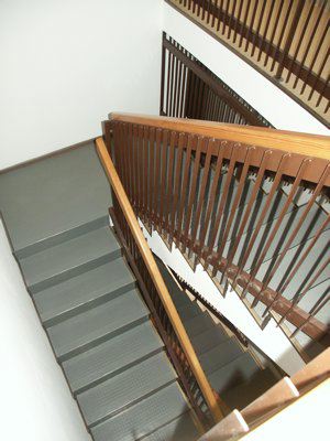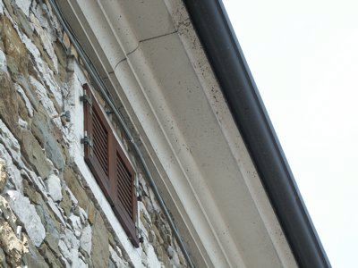 Il fabbricato si caratterizza sul lato fronte strada per il trattamento della facciata in pietra facciavista a tutta altezza. Sugli altri fronti i prospetti risultano invece semplicemente rivestiti a intonaco liscio color rosa chiaro. I fori architettonici sono tutti riquadrati da cornici in pietra bianca; i serramenti vetrati in legno verniciato naturale a doppia anta a due specchiature sono protetti da oscuranti esterni esterni a lamelle orizzontali fisse. Il portone di ingresso a due ante lignee, è delimitato da una cornice in pietra bianca, con architrave decorativo riportante la presunta data di edificazione. Lo sporto modanato della linda, realizzato in calcestruzzo armato facciavista, supporta il canale di gronda in lamiera verniciata color testa di moro. La copertura a falde discontinue presenta un manto in coppi curvi rossi uso Trieste. Internamente le finitura sono costituite da gres porcellanato al pavimento e intonaco bianco alle pareti. La scala di distribuzione ai piani superiori è semplicemente rivestita in guaina antiscivolo.