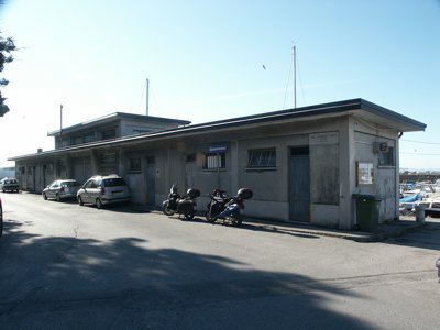 L'edificio monopiano si colloca ai margini dell'interramento di barcola-bovedo e si affaccia direttamente sul porticciolo. La pianta rettangolare allungata espone i lati maggiori a sud-ovest allo specchio acqueo ad a nord est sulla Via Almerigo Grilz e quindi sul giardino retrostante. La struttura in cemento armato presenta una copertura piana con un sopralzo centrale, che permette una migliore illuminazione del vano corrispondente alla sede di un circolo privato. I rimanenti spazi sono suddivisi in piccoli magazzini utilizzati per il deposito delle attrezzature da lavoro dei pescatori.
