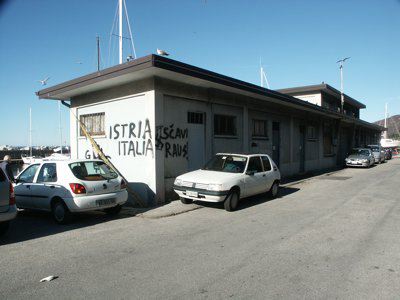 Risale al 1150 il primo statuto per la regolamentazione della vendita del pesce all'interno del territorio di Trieste; a primeggiare nell'attività di pesca fino a tutto il Medioevo fu la corporazione di Muggia, cui si affiancarono, a partire dal Seicento, i pescatori del bacino di Barcola. È proprio la zona prospiciente il mare, tra la città e il castello di Miramare, ad essere interessata da un rapido sviluppo urbanistico nel corso dell'Ottocento; in risposta all'incremento del traffico marittimo e dell'attività di pesca si decise la costruzione di un primo mandracchio nella adiacenze della chiesa di San Bartolomeo, seguita nel 1847 dalla realizzazione di un nuovo bacino ad uso di porto. All'interramento di questo spazio, si accompagnò la creazione di una nuova struttura portuale più esterna, quindi accessibile alle imbarcazioni più grandi. Dal 1885, data di erezione del porticciolo Cedas, prese avvio il progetto di sistemazione dell'area lungo l'asse di collegamento verso Miramare, in fase di allargamento; tra i vari interventi, si segnala il prolungamento dello "squeretto" di Barcola, completato entro la fine del secolo. Importanti lavori di urbanizzazione interessarono l'intera area nel corso della prima metà del Novecento, come testimonia anche la costruzione nel 1951 del celebrato Albergo Americano. In tale contesto si colloca l'impresa in esame. Il progetto per "l'ampliamento del mercato del pesce" di Barcola descrive, nella variante del dicembre 1953, una struttura ad un solo piano, la cui planimetria si articola in diversi piccoli ambienti di servizio, attorno all'area centrale più grande destinata all'attività primaria di vendita del pesce. Il documento originale reca la firma del disegnatore Valentino Leghissa, per il Comune di Trieste. Posteriore di qualche anno alla costruzione dello stabile in oggetto, è l'intervento di interramento dello spazio limitrofo in direzione Miramare, ora occupato da giardini e strutture di servizio.
