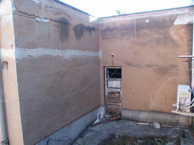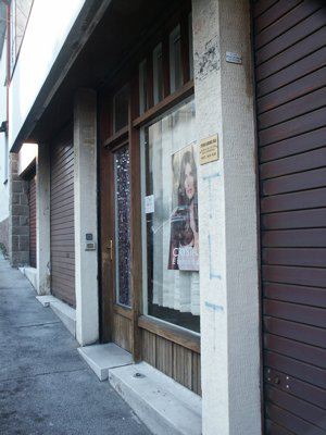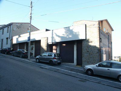 La facciata principale lungo la via Soncini risulta caratterizzante per tutto il fabbricato che presenta una facciata laterale ed una postica completamente prive di elementi compositivi di rilievo e semplicemente rifinite ad intonaco liscio. Sul fronte principale tre setti verticali rivestiti in pietra arenaria, segnano gli spigoli del fabbricato e il salto di quota dei volumi che lo costituiscono, mentre fasce orizzontali in pietra artificiale evidenziano l'orizzontalità della composizione. I volumi, che ospitano locali commerciali, risultano molto aperti sul fronte principale, con serramenti vetrati lignei verniciati al naturale, protetti da serrande metalliche e separati solo da pi lastrature strutturali rifinite in pietra artificiale. Sul lato postico si aprono fori finestra rettangolari con serramenti vetrati lignei a doppia anta verniciati bianchi, protetti da inferriate in ferro battuto incrociate diagonalmente e sottolineati da un semplice davanzale squadrato in pietra artificiale. Un abbassamento in pietra artificiale protegge la parte basamentale della facciata rifinita ad intonaco. Internamente le finiture risultano parzialmente riviste nel corso degli ultimi decenni del secolo XX con intonaci bianchi e piastrella ture ceramiche, parzialmente risultano invece inalterate con marmette di graniglia e cemento e serramenti vetrati lignei verniciati bianchi con specchiature orizzontali acidate.