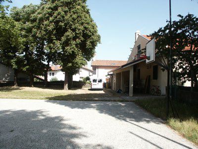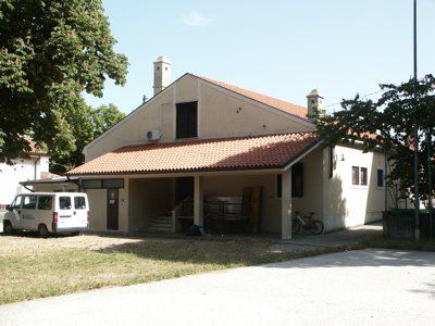 Il fabbricato a pianta quadrangolare con cortile di pertinenza si colloca al centro dell'abitato di Trebiciano e prospetta sulla Strada Provinciale Opicina-Basovizza. Completamente estraneo al contesto urbanizzato circostante per tipologia, dimensioni e materiali, il fabbricato che ospita la sede di un oratorio presenta un livello fuori terra più un sottotetto ed è realizzato sulla base di una struttura in calcestruzzo armato. La copertura a due falde accentua con il grande timpano del prospetto principale la simmetria della composizione.