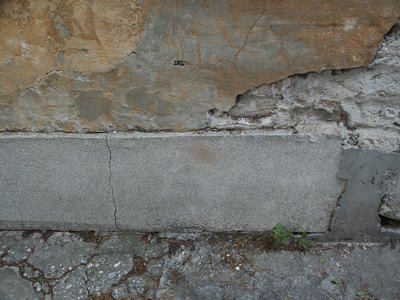 Un abbassamento in pietra artificiale protegge la parte inferiore della muratura rifinita su tutta la superficie ad intonaco liscio. I fori architettonici squadrati presentano cornici e davanzali in pietra artificiale, serramenti lignei verniciati bianchi e serrande esterne in lamiera zincata. La copertura piana con uno sporto di linda a protezione della muratura perimetrale, presenta manto in guaina catramata e scossalina perimetrale in lamiera zincata verniciata grigia.