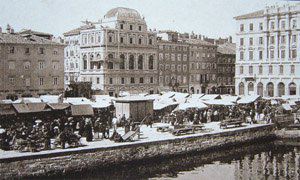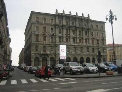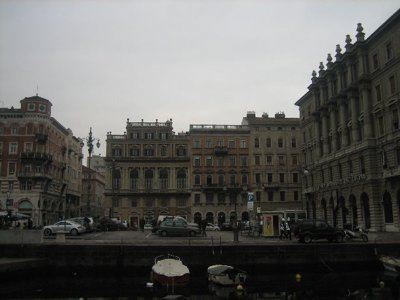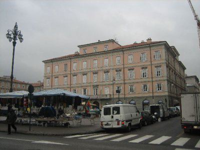 La zona delle antiche saline, a ponente delle mura della città medievale, demolite, per volere dell'imperatrice Maria Teresa d'Austria nel 1749, cominciò ad essere bonificata già a partire dagli inizi del XVIII secolo. Il progetto del suo totale interramento si concretizzò a metà del 1700, allorquando la sovrana cedette al Comune di Trieste i fondi su cui erigere la futura città che, in suo onore, fu chiamata "Teresiana". Il vasto terreno paludoso, nel suo tratto prospiciente il mare, era attraversato all'epoca da tre canali di diversa ampiezza: uno, detto del Vino o Piccolo, lungo un centinaio di metri ed interrato per motivi igienici nel 1816, si inoltrava dentro Piazza della Borsa spingendosi fino al cuore di Piazza Vecchia attraverso l'odierna Portizza. Uno medio, corrispondente, all'incirca, all'attuale canale che dalla chiesa di S. Antonio Nuovo conduceva fino al mare e che accoglieva le acque di due torrenti ed infine un terzo, più corto degli altri due. Tutti e tre questi canali erano accessibili alla navigazione di piccolo cabotaggio a servizio delle saline. Allorquando si stabilì di bonificare l'area, per permettere alla città di espandersi territorialmente in virtù della sua crescita demografica, si prese in considerazione il progetto di interrare il più piccolo allargando invece il medio, rendendolo agibile a bastimenti di stazza maggiore e conservando pure quello del Vino per imbarcazioni minori. Per ordine di Maria Teresa, il 14 ottobre 1756, il Canal Grande, l'unico, di fatto, rimasto, venne ampliato e dotato di sponde murate sotto la direzione dell'arch. Matteo Pirona al costo di 90.000 fiorini. Inizialmente lungo le sponde furono piantati degli alberi, successivamente tolti per probabili motivi di ordine pratico, intralciando, con la loro presenza, le operazioni di ormeggio nonché quelle di carico e scarico delle navi. Largo 28,4 metri, il corso d'acqua era attraversato da due ponti di ferro mobili: il cosiddetto Ponte Verde, all'imboccatura del canale, posizionato nel 1858 e il più noto Ponte Rosso, che metteva in comunicazione l'omonima piazza con l'allora Via delle Poste, collocato nel 1831 ed eseguito nelle officine dei fratelli Strudthoff in sostituzione di uno di legno di colore rosso appunto. L'enorme quantità di terra ricavata dall'ampliamento del canale servì invece da basamento per un terrapieno utilizzato per piccoli scambi commerciali in prossimità del ponte. Fu proprio quel terrapieno a trasformarsi nella futura Piazza del Ponte Rosso. Lo spazio fu regolarizzato e concepito nelle sue forme architettoniche da Gianantonio Tognana già nel 1776, derivando il suo appellativo proprio dal colore del ponte che costituiva il passaggio obbligato tra la città vecchia e quella nuova. La sua posizione strategica, prospiciente il punto di approdo delle navi e al crocevia di importanti vie di comunicazione, rese la piazza uno dei punti di incontro più dinamici dal punto di vista commerciale e mercantile, divenendo ben presto sede di un vivace mercato ortofrutticolo. Piazza del Ponterosso fu, sin dalla sua iniziale creazione, un'ampia piazza quadrangolare circondata da numerosi edifici di gran pregio architettonico, le cui prime registrazioni tavolari risalgono al 1789. Tagliata a metà dall'odierna Via Roma, lo spazio presenta sul lato a settentrione una fontana a tre bocche rappresentante una rupe sul cui vertice poggia un genio fluviatile. L'opera risale al 1751 su progetto dello scultore Francesco Mazzoleni, creatore della fontana dei Quattro Continenti di Piazza Unità d'Italia. Familiarmente nota come fontana del "Giovanin", in onore del puttino che la sormonta, la fontana attingeva l'acqua direttamente dall'acquedotto teresiano fatto costruire dall'imperatrice a metà del 1700 incanalando le acque provenienti dalle alture di S. Giovanni. Ingentilivano la piazza, non solo la fontana del Puttino, ma anche un chiosco in muratura e ferro destinato ad ospitare un corpo di guardia ed alcuni gabinetti pubblici in ghisa decorata. La regolazione della contrada del Canal Grande risale al 1821, allorquando l'Ufficio delle Civiche Fabbriche approvò il progetto di lastricazione dell'area. La pavimentazione, in grossi blocchi di masegno, venne disposta a spina di pesce nella zona centrale, a correre lungo il sedime delle strade. La struttura della piazza rimase invariata nella sua sostanza fino alla metà del XX secolo. Durante lo stravolgimento della viabilità stradale negli anni '50, l'antico lastricato venne, infatti, ricoperto con un manto di asfalto. Si colse allora l'occasione per interrare i servizi igienici. Sulla piazza fanno bella mostra di sé alcuni tra i più eleganti edifici triestini come, ad esempio, la monumentale sede della Banca Nazionale del Lavoro, insediatasi dal 1928 nell'edificio costruito per il commerciante Alessandro Genel nel 1873. Oppure gli edifici posti agli angoli con Via Roma: al numero civico 3, il palazzo opera di A. Bacicchi, risalente al 1882; al numero civico 4, il fabbricato noto con il nome di casa Allodi con la sua originale torretta ottagonale risalente al 1913, progettato dall'arch. O. Sonetti e che ospitò, durante gli anni Trenta, l'Hotel Centrale.