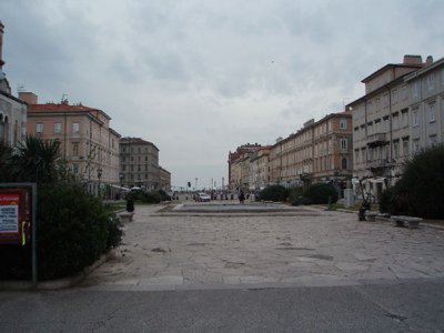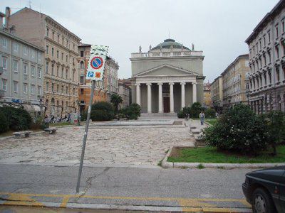 La zona delle antiche saline a ponente delle mura della città medievale, demolite, per volere dell'imperatrice Maria Teresa d'Austria nel 1749, cominciò ad essere bonificata già a partire dagli inizi del XVIII secolo concretizzando il progetto del suo totale interramento allorquando la sovrana cedette al Comune i fondi su cui erigere la futura città Teresiana. Il vasto terreno paludoso più vicino al mare era attraversato, all'epoca, da tre canali di diversa grandezza accessibili alla navigazione di piccolo cabotaggio messo a servizio delle saline: uno, detto del Vino o Piccolo, lungo un centinaio di metri interrato per motivi igienici nel 1816. Uno medio, corrispondente pressappoco all'attuale canale che dalla chiesa di S. Antonio Nuovo conduce fino al mare ed infine un terzo, più corto degli altri due. Quando si stabilì di bonificare l'area, si prese in considerazione il progetto di interrare il più piccolo, allargare il medio (rendendolo agibile ai bastimenti di stazza maggiore) e conservare il canale del Vino. Per ordine di Maria Teresa, il 14 ottobre 1756, il Canal Grande venne ampliato e dotato di una sponda murata sotto la direzione dell'architetto Matteo Pirona al costo di 90.000 fiorini. Inizialmente lungo le sponde furono piantati degli alberi, immantinente tolti per probabili motivi di ordine pratico, intralciando l'ormeggio dei bastimenti ed il transito delle merci. Largo 28,4 metri, il corso d'acqua era attraversato da due ponti di ferro mobili: il cosiddetto Ponte Verde e il più noto Ponte Rosso, che metteva in comunicazione l'omonima piazza con l'allora Via delle Poste. Nel 1769 venne eretta, nel tratto antistante la parte terminale del Canal Grande, una chiesa barocca dedicata a S. Antonio che, come ci ricorda il Generini, fu costruita con il "peculio di pii benefattori ad iniziativa dei fedeli dell'antica confraternita dei nobili addetta alla chiesa volgarmente nota per S. Antonio vecchio". Lo spazio compreso tra il nuovo fabbricato ed il canale prese quindi il nome di Piazza S. Antonio. La chiesa fu restaurata nel 1784 e, ritenuta non più consona alle mutate situazioni demografiche, fu demolita e sostituita, nel 1827, con l'attuale edificio progettato dall'architetto Pietro Nobile. Il nuovo tempio, consacrato dal vescovo Bartolomeo Legat, fu officiato per la prima volta il 3 aprile 1842, ma completato appena nel 1849. Allorquando i lavori di fabbricazione dell'edificio erano in fase di ultimazione, si decise di portare a termine anche il progetto di sostituzione del vecchio selciato nella parte antistante la chiesa. La lastricazione della Contrada di S. Antonio avvenne, infatti, in periodi successivi, tra il 1820 ed il 1835, allorquando tutta l'originaria pavimentazione della città venne sostituita con delle pietre più regolari ed ordinate. Nel 1820 Il Consiglio comunale aveva perfino avvallato un progetto di modifica delle ruote dei carri addetti al trasporto delle merci da un magazzino all'altro, di modo che la pavimentazione del nuovo lastricato non potesse esser compromessa. Nel 1824 il Comune decretò anche la costruzione di una ringhiera di ferro battuto da sistemarsi sulla testa del canale, proprio dirimpetto alla facciata della chiesa. Ma la demolizione del vecchio edificio e il notevole rallentamento dei lavori del nuovo, di fatto, condizionarono l'effettiva selciatura dell'area prospiciente la chiesa stessa che, ingombra delle travature di legno a protezione del nuovo fabbricato, impedirono per un bel pezzo la possibilità di posare le nuove pietre. Nel 1832 parte dei lavori dovevano però essere ultimati, se è vero che il Comune dovette fare espressa richiesta all'imprenditore Valentino Valle, responsabile della pavimentazione, di abbattere, sulla Piazza del Ponterosso, il casotto eretto per "comodo delli lavori da tagliapietre della nuova chiesa di S. Antonio, casotto lì da quasi 5 anni". Le "Condizioni d'incanto" del 1830, relative alla pavimentazione della piazza precisavano, inoltre, che le pietre del vecchio selciato non dovevano essere buttate via, ma trasportate fino al Borgo Giuseppino, sulla riva del mare, per "proseguire il nuovo quais". Nel 1934 si diedero avvio a quei lavori di interramento del canale che portarono Piazza S. Antonio ad assumere l'odierna fisionomia: una fontana centrale al posto dell'acqua e sei aiuole fiorite da contorno. Utilizzando il materiale proveniente dalle demolizioni di Cittavecchia, l'ultimo tratto dell'antico corso d'acqua piano piano scomparve. Il nuovo spazio che ne derivò prese il nome di Piazza Umberto I. Tra le curiosità degne di nota figura quella dell'interramento, all'interno del canale, di una torpediniera austriaca che, trovandosi lì ormeggiata da tempo e ormai fuori uso, venne ricoperta dal materiali di riporto, una volta adagiatasi su un fianco. Giace ora sotto la fontana, testimone silente di un passato ormai dimenticato. Dando le spalle alla chiesa, sul lato sinistro vale la pena di sottolineare la presenza di un altro edificio di interesse storico e sociale di non secondaria importanza: il Caffè Stella Polare. Nel 1900 a causa dei lavori di ristrutturazione della Casa della Comunità Serbo ortodossa, il Caffè, lì ospitato, venne chiuso, si pensò allora di erigere un fabbricato provvisorio, in cemento e legno, che fu ubicato proprio di fronte alla chiesa nello spazio davanti al canale. Ebbe forme secessioniste e durò alcuni anni sino all'inaugurazione del nuovo palazzo progettato dall'ingegner C. Cambiario nel 1902. Durante gli anni Quaranta e Cinquanta la piazza fu utilizzata come parcheggio autovetture.