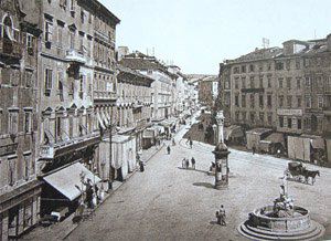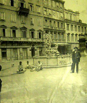 Piazza della Borsa, cuore nevralgico di una città che cominciò a sviluppare il suo tessuto urbano a partire dalla metà del XVIII secolo, si presenta come il risultato di differenti impianti urbanistici risalenti ad epoche diverse. Lo spazio si definì, nella sua attuale forma architettonica, allorquando l'imperatrice d'Austria, Maria Teresa, diede un nuovo impulso alle costruzioni interrando, nel 1749, le saline ad ovest delle antiche mura tergestine. Estendendo i benefici del Punto Franco a tutto l'Emporio, Maria Teresa, contribuì notevolmente allo sviluppo sociale ed economico della città, producendo dei vantaggi grandissimi: incremento che, pur subendo un drastico arresto durante la dominazione francese, riprese, seppur a fatica, dopo la Restaurazione, con il ritorno del dominio asburgico. Diretta conseguenza di questo slancio economico fu, quindi, l'aumento della popolazione, che, verso la metà del XIX secolo, segnalava la presenza di ben 80.000 unità. Trieste allora subì una radicale trasformazione del suo tessuto urbano, modernizzandosi nell'aspetto e nei contenuti: la città, assetata di nuovi spazi, andò presto a ricoprire con edifici, vie e piazze, i terreni paludosi strappati con fatica alla forza del mare. La bonifica e il prosciugamento delle antiche saline, già cominciata all'inizio del secolo, si concretizzò pienamente solo nel 1749, allorquando fu emanata un'Istruzione Imperiale con la quale si regolamentava l'urbanizzazione del nuovo Borgo, chiamato, appunto, delle Saline. Tale Borgo venne concesso al Comune nel 1750 dietro la rinuncia al credito di 20.000 fiorini prestati nel 1745 all'Erario e dietro la cessione di alcuni dazi, tra i quali quello del pesce, del nocchiero, dell'ancoraggio e del quarantesimo sull'olio, in grado di fruttare circa 5.000 fiorini di rendita l'anno, per far fronte alle spese delle giurisdizioni civili, politiche e penali che avrebbero gravato d'ora in avanti sull'Erario, come diretta conseguenza della creazione della nuova città. La dirigenza dei lavori d'interramento, che si auspicavano rapidi e veloci, sarebbe stata affidata all'ing. Francesco Saverio Bonomo e così, come ci ricorda il Trampus: "L'opera, che diede l'impulso decisivo all'erezione del nuovo borgo, fu la realizzazione del Canal Grande ottenuto ampliando il vecchio canale collettore delle saline, avvenuta tra il 1754 e il 1756 ad opera dell'impresario Mattio Pirona. L'abitato cominciò ad estendersi progressivamente sulle nuove aree in direzione Nord-Nord Est, da Corso Italia verso Via Ghega". Abbattute, per volere della sovrana, le antiche mura medievali, la città cominciò rapidamente ad espandersi verso ponente assumendo il nome di città Teresiana. Edoardo Marini così ci ricorda: "La piazza del terreno della Contrada di Porta Nuova, chiamata anche Piazza della Portizza, cominciò a delinearsi con il suo caratteristico tracciato triangolare, quando nuove case si allinearono sulla Via delle Beccherie, sul posto delle vecchie mura demolite, dalla Porta di Vienna, atterrata nel 1780 (oggi capo di Piazza) al Largo Riborgo, tra l'edificio della vecchia Dogana (posto dell'odierno Tergesteo) e gli edifici marginali del Borgo Teresiano lasciando aperto un tratto del Canal Piccolo". L'irregolare spazio, delimitato dalla Piazza Grande, dalle Rive e dal Corso, fu chiamato quindi Piazza della Borsa dal nome del palazzo della Borsa, simbolo dell'intraprendenza commerciale triestina, che lì trovò la sua ideale collocazione. L'antica Piazza della Portizza, era originariamente divisa da un canale lungo un centinaio di metri, chiamato Canal Piccolo o del Vino, il cui tratto, da Porta Riborgo alla Portizza, venne soppresso già nel 1730, cogliendo allora l'occasione non solo d'elevare alte sponde murate nel tratto fino al mare, ma anche di allargarlo. Divenuto malsano, il Comune ne decretò il suo totale interramento nel 1816. Proprio sull'area occupata parzialmente da quel piccolo canale fu edificato, nel 1802, il palazzo della Borsa, su progetto dell'arch. Antonio Molari di Macerata. L'edificio, di netta impronta neoclassica, secondo le mode imperanti allora, si distinse subito per l'elegante facciata a 4 colonne doriche. Le grandi statue del porticato furono aggiunte solo successivamente, nel 1807. Al lato del palazzo della Borsa sorge il Tergesteo, costruito sul fondo dell'antica Dogana (parte della quale era destinata ad ospitare i governatori della città). La vecchia costruzione, risalente al 1754, fu ceduta al conte Antonimo Faraone Cassis per 70.000 fiorini, nel 1785, allorquando gli uffici doganali furono trasferiti nell'omonima piazza. L'intraprendente uomo d'affari demolì l'originaria struttura nel 1840 dando avvio ai lavori di costruzione del Tergesteo. Il nuovo fabbricato, eseguito dall'impresario Valentino Valle, su disegno dell'arch. Antonimo Buttazzoni, divenne ben presto il ritrovo della società azionista triestina. La particolarità e la bellezza dell'edificio consistono nella singolare galleria crociata interna, la cui copertura si componeva, inizialmente, di una struttura di ferro e vetro poi, purtroppo, sostituita. Dal 1844 ospitò la Borsa, la cui sede primitiva, ormai insufficiente ad accogliere le riunioni affaristiche, venne utilizzata come sede della Camera di Commercio e Industria. Altro edificio di pregio, prospettante la propria facciata sulla piazza, è l'elegante fabbricato che ospita la Borsa dal 30 ottobre 1928. Eretto come Restaurant- Birreria della Dreher, è opera degli architetti Bressler e Wittrisc. Ulteriori edifici di valore, non solo artistico, ma anche storico, sono: il numero civico 9, dove iniziò la sua attività il Gabinetto di Minerva (società letteraria scientifica istituita nel 1809 da Domenico Rossetti) e la singolare casa Bartoli, opera dell'arch. Max Fabiani, risalente al 1905. Al centro della piazza c'era originariamente quella fontana del Nettuno, alimentata dall'acqua Teresiana di S. Giovanni, opera del Mazzoleni, sposta