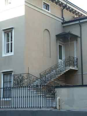 ELEMENTO ORNAMENTALE (esterno): Edicola a tutta altezza in corrispondenza dell'ingresso principale, paraste in pietra binate con motivi geometrici a forma piramidale a lato del portale, balaustre in pietra bianca in corrispondenza dei balconi del primo e secondo piano, mensole a voluta a sostegno dei balconi, timpano triangolare sopra alle finestre del secondo piano (PICT0039.JPG). ELEMENTO ORNAMENTALE (esterno): Edicole con cornici in pietra bianca a decorazione delle finestre del primo e del secondo piano; al primo piano, con specchiatura decorata da motivi geometrici sotto al davanzale; al secondo piano con timpano triangolare a completamento dell'architrave. LAPIDE (esterno): A sinistra dell'ingresso principale a livello del primo piano, lapide commemorativa in marmo ornata da corone di alloro, riportante la dicitura "Alle finestre e lungo le scale di questo palazzo il XXIII aprile MCMXLIV cinquanta pendenti salme di martiri mostrarono alla città inorridita la ferocia dell'irato germanico tiranno ciecamente sfogata su uomini di liberi sensi, infermi prigionieri in sue mani, a perpetuo ricordo dei sacrificati pose il comune, XXIII aprile MCMXLVII". BALDACCHINO (esterno): Elemento in ferro verniciato decorato da sottili volute in sintonia con il parapetto della scala di accesso, posto a protezione dell'ingresso all'alloggio del custode (PICT0031.JPG). FONTANA (interno): Posta nell'atrio d'ingresso, in prossimità del cortile centrale, fontanella a muro in pietra bianca con raffigurazione di volto umano. STEMMA (interno): In corrispondenza degli angoli, sul soffitto dell'atrio di ingresso, quattro stemmi della famiglia Rittmeyer in pietra bianca con iniziale "R" dorata e decorazioni floreali in pietra bianca (PICT0046.JPG). LAPIDE (interno): Nell'atrio di ingresso, lapide marmorea riportante la seguente dicitura: "In occasione del centenario del conservatorio di musica Giuseppe Tartini, la città di Trieste riconferma il proprio sostegno all'operosità dell'Istituto con l'augurio di un futuro di eccellenza nel segno dell'universalità dell'arte musicale. 1903-2003" ELEMENTI ORNAMENTALI (interno): In corrispondenza della volta a padiglione del vano scala principale, decorazioni in stucco bianco su sfondo azzurro. ELEMENTI ORNAMENTALI (interno): A decorazione dell'aula magna, elementi in stucco e pietra bianca; motivi geometrici in corrispondenza della volta a botte, motivi floreali in corrispondenza del fregio ornamentale, forme antropomorfe in corrispondenza dei capitelli a completamento delle lesene ed ancora motivi floreali a decorazione della superficie delle lesene stesse.