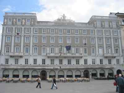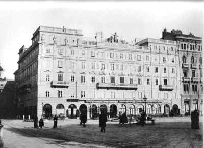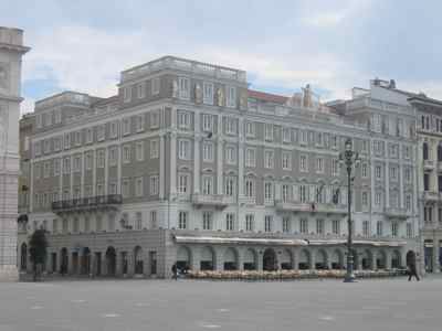 STATUE Il gruppo scultoreo collocato sulla sommità dell'immobile, fu realizzato dal veneziano Luigi Zandomeneghi, e simboleggia le arti, l'industria, la navigazione e il commercio. Un particolare curioso è rappresentato dal modello della prima locomotiva usata dall'Austria. Altre statue sono poste tra le finestre dell'ultimo piano a livello delle sopraelevazioni laterali della facciata. ISCRIZIONE Al centro della balaustra di coronamento prospiciente piazza dell'Unità un riquadro reca scolpita la scritta "Assicurazioni Generali", eseguita nel 1872. LESENE Lesene di ordine gigante con capitello ionico sulla facciata principale. PARASTE Paraste scanalate di ordine gigante con capitello dorico sulle facciate laterali BALAUSTRE Parapetti in pietra e in ferro battuto ornano i balconi.