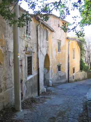 Il fabbricato si affaccia su Vicolo dei Roveri che, da Via Giulia, si diparte verso Nord seguendo l'iniziale pendio del monte Valerio. Presenta un affaccio su strada; il lotto è delimitato da un muro a secco. Fabbricato composto da tre corpi edilizi a due e tre livelli; l'accesso alle due ali laterali e al parco retrostante avviene attraverso un ampio portale. Strutture verticali in muratura portante di pietra arenaria mista a laterizio. Solai in travi lignee con interventi puntuali di consolidamento in profilo metallico. Copertura a falde inclinate con struttura lignea e manto di copertura in coppi curvi rossi. Fabbricato di campagna ottocentesco composto da più volumi.