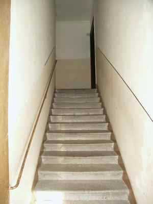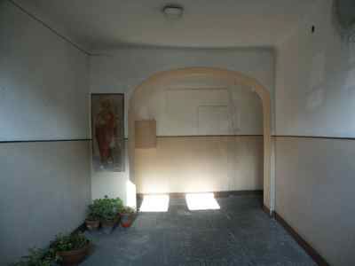 Facciate trattate ad intonaco a tutta altezza. Contrafforte di sostegno a scarpa in muratura portante di arenaria, fascia basamentale in corrispondenza del piano seminterrato trattata a rinzaffo di malta cementizia, con cordolo marcapiano in pietra arenaria (PICT0224.JPG). Portone di ingresso in legno massello a doppia anta con specchiature vetrate di ridotte dimensioni protette da inferriate in ferro battuto. Serramenti oscuranti metallici al piano terra, lignei ai piani superiori; finestre lignee in corrispondenza delle parti comuni, in alluminio in corrispondenza degli appartamenti privati. Cornici in pietra bianca bulinata con architrave modanata in pietra con gocciolatoio, in corrispondenza del primo e secondo piano. Lucernari lignei in corrispondenza dell'attico. Sporto di linda trattato ad intonaco con gronda e pluviale in lamiera. Atrio di ingresso e parti comuni dello stabile pavimentati a mezzo di lastre lapidee di grandi dimensioni trattate a bocciarda. Superfici murarie trattate ad intonaco con abbassamento e fascia battipiede pitturati ad olio. Vano scala con gradini in pietra bianca bulinata e corrimano metallico montato sul setto centrale in muratura. Serramenti interni di ingresso agli appartamenti in legno massello a doppia anta. Scala lignea del tipo appoggiato con corrimano in legno per l'accesso all'attico.