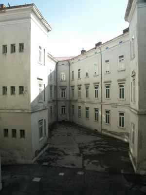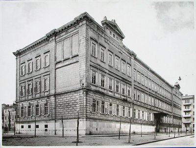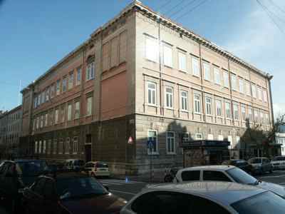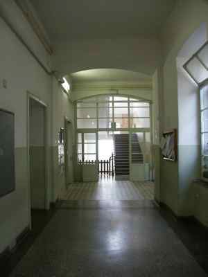 Basamento esterno di facciata trattato a finto bugnato di intonaco a livello del piano terra, con fascia marcapiano a livello del solaio del piano terra ed abbassamento in pietra bianca bulinata a livello delle finestre del piano seminterrato. Marcapiano quadro rifinito ad intonaco a livello del solaio del primo piano; più sottile a livello del solaio del secondo piano; coronamento con fregio decorativo a motivi geometrici e banchina sporgente modanata con gocciolatoio. Paraste di ordine gigante trattate ad intonaco scandiscono verticalmente i ritmi di facciata. Fori architettonici del piano terra con piattabanda a finto bugnato con chiave di volta in rilievo sulla facciata; al primo piano finestre riquadrate da edicole trattate ad intonaco con paraste laterali, doppio architrave, gocciolatoio modanato e davanzale in pietra bianca. Portali di ingresso a doppia anta tutti in legno massello con decorazioni geometriche delle parti tamponate, specchiature vetrate protette da inferriate decorate in ferro battuto e sopraluce a due specchiature; cornici in pietra bianca bulinata. Ingresso sulla Via della Bastia dotato di maggiore monumentalità, a mezzo di cornice modanata in pietra bianca di notevoli dimensioni; tettoia metallica di grandi dimensioni a protezione dell'ingresso, decorata da elementi di sostegno reticolari decorati da motivi geometrici. Sulla Via della Bastia, agli estremi della facciata, attici con piccole finestre quadrate; decorazione di facciata a lesene con capitello ionico, timpano modanato con dentelli ed acroteri. Facciate sul cortile interno più sobrie, trattate ad intonaco a tutta altezza; fascia marcapiano a livello del solaio del primo piano; coronamento decorato da fascia modanata in pietra bianca con piccole finestre rettangolari, che danno luce al sottotetto; cornici in pietra bianca in corrispondenza dei fori a tutti i livelli; architrave modanato in pietra bianca a livello del primo piano. Scale esterne in pietra bianca bulinata con parapetto in muratura, per l'accesso al piano terra dal cortile interno. Manto di copertura in coppi curvi rossi uso Trieste, gronde e pluviali in lamiera; pluviali interni alla muratura a livello del piano terra delle facciate rivolte verso strada. SCUOLA SLATAPER, CORRIDOIO NORD ED EST Serramenti esterni doppi; esternamente a doppia anta in alluminio verniciato bianco con vetrocamera e sopraluce vetrato; internamente permane il serramento originale ligneo a due ante ad otto specchiature, con sopraluce apribile a vasistas. Atrio di ingresso sulla Via della Bastia con pavimento in marmo a scacchiera bianca e nera, colonne con capitello corinzio in marmo lucido, soffitto a padiglione con decorazioni a stucco. Pareti con cornici a stucco e specchiature pitturate colore bianco. Monumento a Scipio Slataper sulla parete di fondo. Scala di accesso al piano terra rialzato con gradini in pietra bianca bulinata e parapetto in marmo decorato a motivi geometrici. Elementi a supporto dei corpi illuminanti in ferro verniciato colore nero. Corridoi interni pavimentati parzialmente a mezzo di battuto in graniglia e cemento, parzialmente a mezzo di piastrelline di ceramica bianca con decorazione nera. Pavimenti delle aule in parquet ligneo disposto a spina di pesce, con riquadri in marmo bianco in corrispondenza degli angoli dove un tempo erano posizionate le stufe a legna. Serramenti interni originali lignei di grandi dimensioni a più ante, con specchiature vetrate e sopraluce di grandi dimensioni in corrispondenza degli accessi ai corridoi; serramenti di porte in legno massello a riquadri rettangolari in corrispondenza delle aule. Vasche in marmo di Aurisina poste lungo i corridoi, utilizzate dai militari al tempo in cui l'edificio era adibito a caserma. Pareti trattate ad intonaco bianco con abbassamento in pittura ad olio. Scale di accesso ai piani con gradini in pietra bianca bulinata e parapetto con ringhiera in ferrro battuto decorato a motivi geometrici e corrimano ligneo curvato in corrispondenza dei pianerottoli. Al piano terra, piccolo teatro interno con sedute in legno massello con chiusura a bilico, disposte su platea a gradoni. SCUOLA TIMEUS, CORRIDOIO OVEST Atrio di ingresso con scala di accesso al piano terra rialzato in pietra bianca squadrata e lucidata di moderna fattura e corrimano in acciaio inox in corrispondenza del numero civico 56 di Via dell'Istria. Scala in pietra bianca bulinata di epoca storica con colonnine laterali in ghisa, in corrispondenza del numero civico 58 di Via dell'Istria. Serramenti di finestra in alluminio verniciato bianco con sopraluce, privi dell'anta interna in legno. Serramenti interni vetrati in alluminio laccato colorato in corrispondenza delle porte di comunicazione dei corridoi; porte metalliche antincendio verniciate a chiusura automatica in corrispondenza delle aule. Corridoi con pavimenti in linoleum e pareti rivestite in piastrelle colorate formato 15x15 fino ad altezza 180 cm. Aule con pavimenti in parquet disposto a spina di pesce; superfici verticali intonacate con abbassamento in pittura ad olio. Vano scala principale con gradini in pietra bianca bulinata, parapetto in ferro verniciato con decorazioni geometriche e corrimano in legno, curvo in corrispondenza dei pianerottoli; pavimentazione dei pianerottoli in lastre di pietra di Aurisina. Vano scala secondario con scala in pietra bianca squadrata e lucidata di moderna fattura, parapetto metallico di semplice fattura e corrimano ligneo.