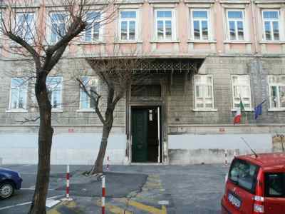 ELEMENTO ORNAMENTALE (esterno) Paraste di ordine gigante rifinite ad intonaco rafforzano le fasce d'angolo delle facciate sul fronte strada. ELEMENTO ORNAMENTALE (esterno) Fascia ornamentale di coronamento della facciata con doppi fregio; quello inferiore decorato da motivi geometrici; quello superiore decorato da decorazione continua a greca. ELEMENTO ORNAMENTALE (esterno) Portale monumentale in corrispondenza dell'ingresso di Via della Bastia, dotato di cornice modanata in pietra bianca di notevoli dimensioni; tettoia metallica di grandi dimensioni a protezione dell'ingresso, decorata da elementi di sostegno reticolari decorati da motivi geometrici. ELEMENTO ORNAMENTALE (esterno) Sulla Via della Bastia, agli estremi della facciata, attici con piccole finestre quadrate; decorazione di facciata a lesene con capitello ionico, timpano modanato con dentelli ed acroteri. ISCRIZIONE (interno) Sulla parete di fondo dell'atrio di ingresso di Via della Bastia, iscrizione in caratteri corsivi riportante la dicitura "...i nostri figlioli siano educati al sacrificio, e non al tornaconto. Scipio Slataper" ELEMENTO ORNAMENTALE (interno) Nella'atrio di ingresso di Via della Bastia, busto in marmo nero alla memoria di Scipio Slataper. ELEMENTO ORNAMENTALE (interno) Al secondo piano del corridoio ovest, busto in marmo nero alla memoria di Ruggero Timeus. LAPIDE (interno) Al secondo piano del corridoio ovest, lapide in pietra di Aurisina, riportante la seguente dicitura in caratteri rossi: "RUGGERO TIMEUS; UCCISO DA GRANATA AUSTRIACA IL 14 SETTEMBRE 1915 A VETTA PAL PICCOLO; VITA BREVE PURA RADIOSA TUTTA OFFERTA E SACRIFICATA ALL'ITALIA; I SUOI COMPAGNI DELL'8 ALPINI; A CURA DELL'A.N.A. DI TRIESTE, MCMLIX". ELEMENTO ORNAMENTALE (interno) Balaustre metalliche in ferro decorate da motivi geometrici con corrimano ligneo, in corrispondenza di tutti i vano scala dell'edificio.