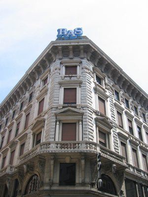 Il palazzo viene realizzato tra il 1909 ed il 1914 per ospitare la sede della Riunione Adriatica di Sicurtà su progetto degli architetti Ruggero ed Arduino Berlam. I problemi relativi all'ideazione dell'edificio sono abbastanza complessi: dalla scelta del terreno per la nuova sede, all'idea di bandire un concorso per il progetto fino alla realizzazione. Nel 1902 Adolfo de Frigyessy, direttore della Compagnia dal 1899, decide acquistare un'area centrale della città tra via Dante Alighieri, Santa Caterina, Corso Italia e piazza Nuova, oggi piazza della Repubblica. Sette anni dopo la società bandisce un concorso ad inviti per il progetto dell'edificio al quale partecipano dieci concorrenti; Ruggero ed Arduino Berlam si aggiudicano l'incarico con un disegno scenografico e monumentale arricchito da sculture e oggetti di design per l'allestimento interno. L'edificio viene arretrato di alcuni metri rispetto alle vecchie costruzioni permettendo una maggiore possibilità di lettura della struttura. Attualmente l'edificio ospita al pianterreno attività commerciali e uffici ai piani superiori.