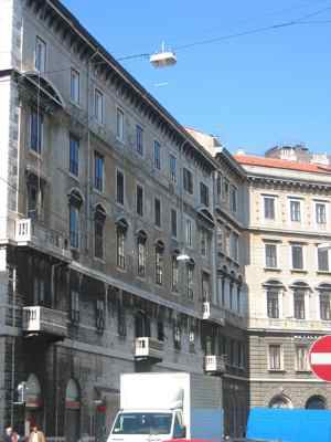 L' immobile è costituito da cinque piani fuori terra. Accesso su Via Carlo Ghega, Via Trento e Via della Geppa. Le facciate, trattate in modo quasi analogo, sono suddivise orizzontalmente per mezzo di un basamento in pietra bianca e in una fascia superiore trattata ad intonaco. Il prospetto su Via Trento presenta una porzione centrale in aggetto con semicolonne e lesene addossate di riferimento neoclassico. Al centro e ai lati in corrispondenza del primo e secondo pinao si trovano dei balconcini a balaustra. I fori finestra sono caratterizzati da cimasa lineare; al secondo piano le finestre sono arricchite da timpano curvilineo. A coronamento dell'edificio si trova una cornice a dentelli.