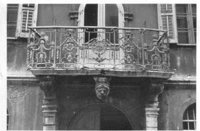 PANDURO Sopra al portale d'ingresso principale è presente un mascherone raffigurante un volto d'uomo con turbante BALAUSTRA Il poggiolo è ingentilito da una balaustra in ferro battuto lavorata con decorazioni vegetali e geometriche.